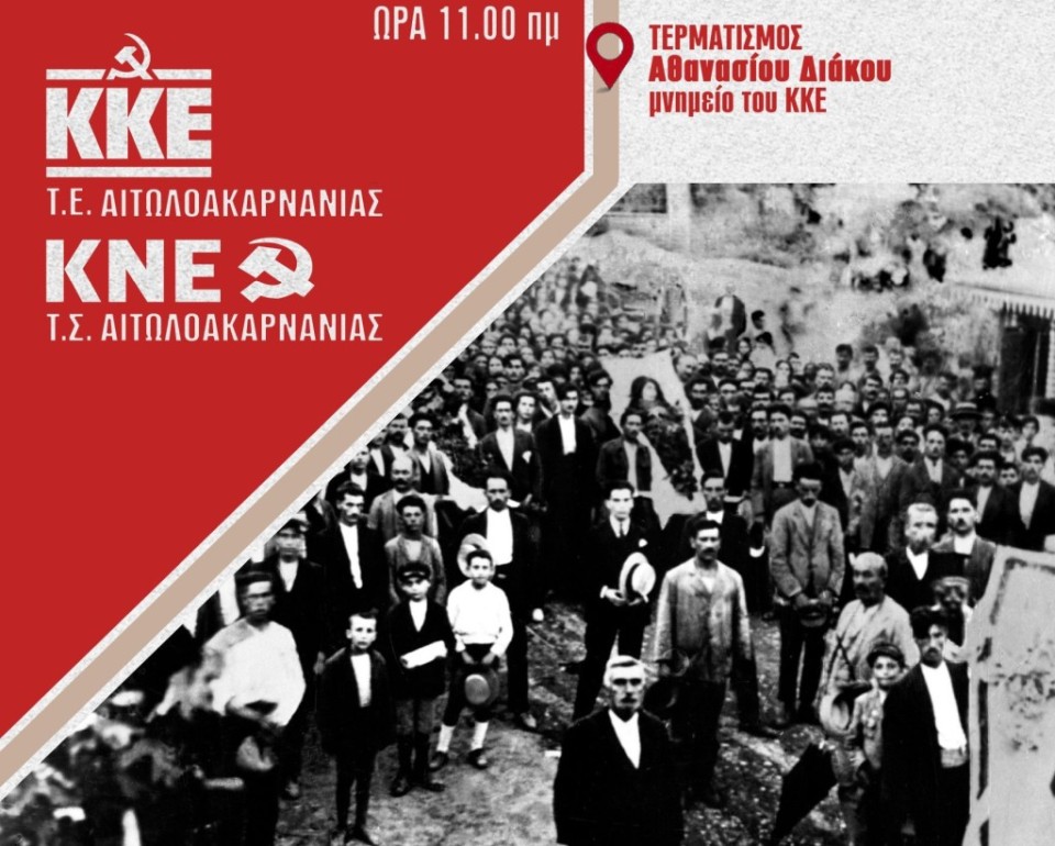 Ιστορικό περίπατο στο Αγρίνιο διοργανώνουν η Τομεακή Επιτροπή Αιτωλοακαρνανίας του ΚΚΕ και το Τομεακό Συμβούλιο Αιτωλοακαρνανίας της ΚΝΕ, την Κυριακή 27 Απριλίου, στις 11 πμ, με αφορμή την Πρωτομαγιά.