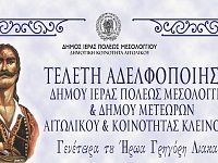 Έξοδος Ο δρόμος για την Αθανασία Η Ιερά Μητρόπολις Αιτωλίας και Ακαρνανίας παρουσιάζει το Ορατόριο του Ανδρέα Κατσιγιάννη, σε σκηνοθεσία – κείμενα και αφήγηση της Μιμής Ντενίση, μια Ελεγεία στον Ηρωισμό, με αφορμή την συμπλήρωση 200 χρόνων από την Έξοδο του Μεσολογγίου Πέμπτη 14 Μαΐου 2026 και ώρα…